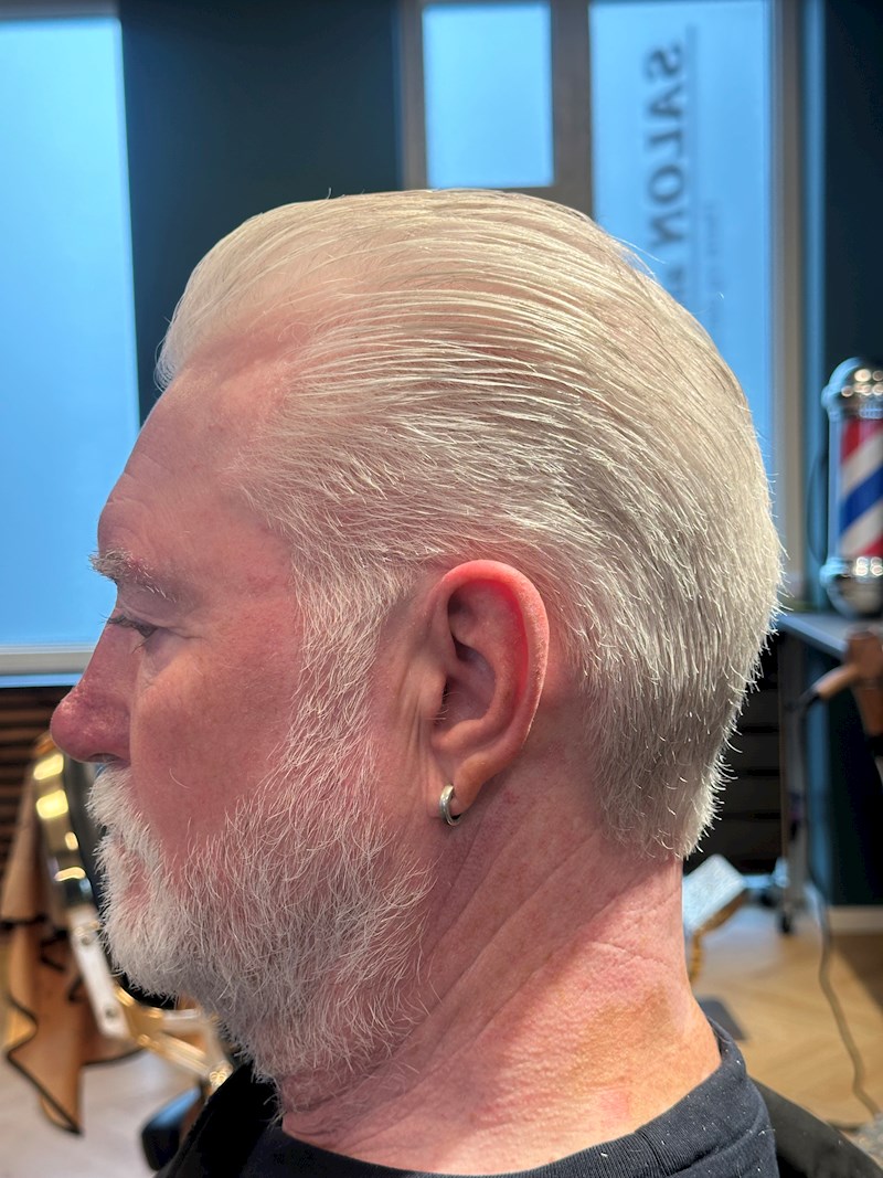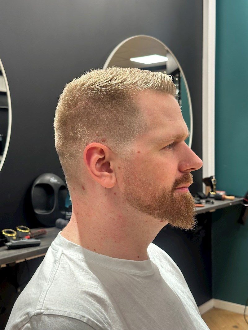 Professionel herreklipning eller fadecut, skræddersyet til dine ønsker og din hovedform. Vi tilbyder præcise og stilfulde klipninger, der matcher din personlige stil